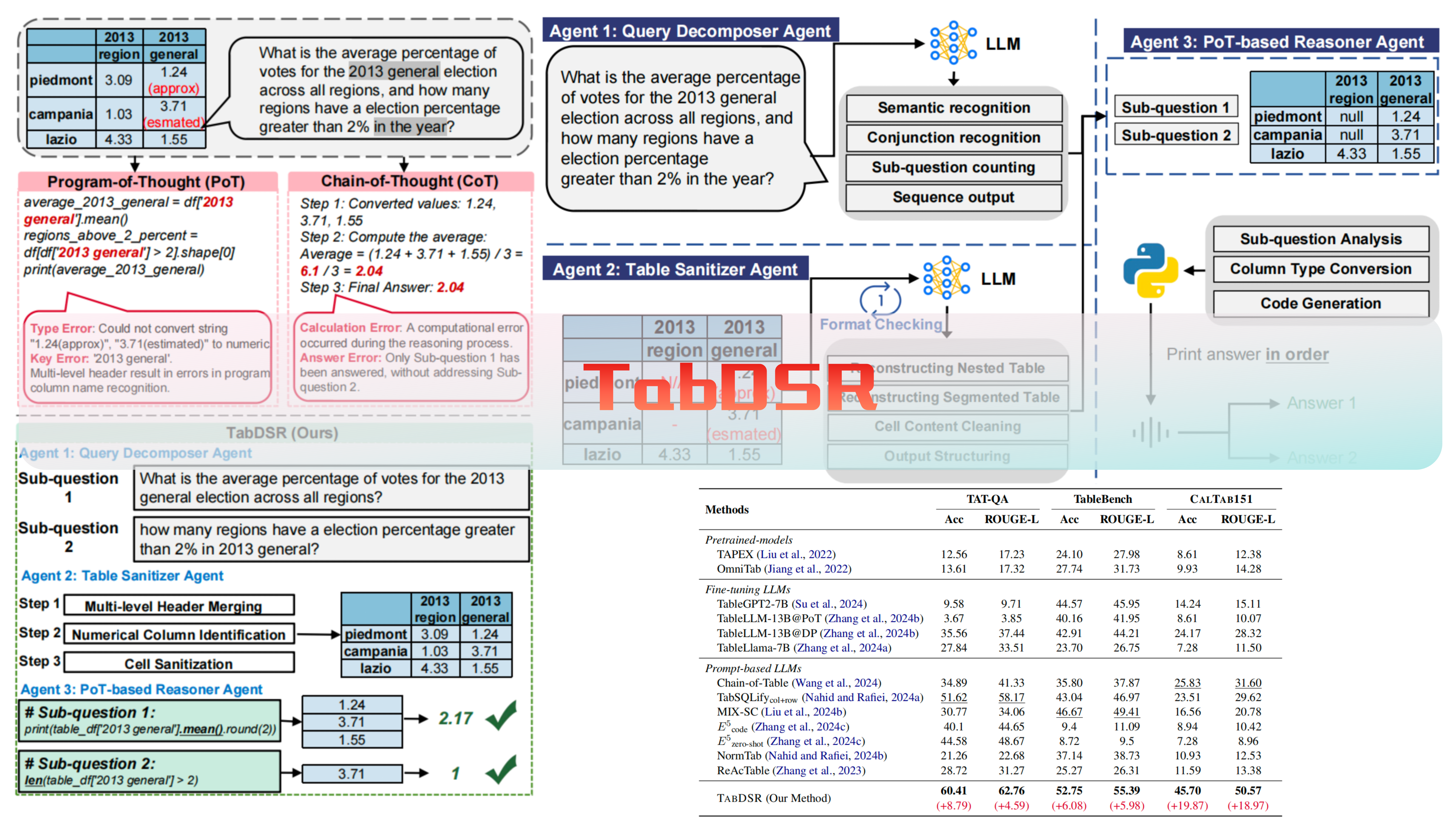 TABDSR: Decompose, Sanitize, and Reason for Complex Numerical Reasoning in Tabular Data